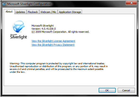 On clicking on Silver Light, Silver Light configuration window will get open. See the image below.