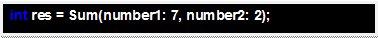 int res = Sum(number1: 7, number2: 2);