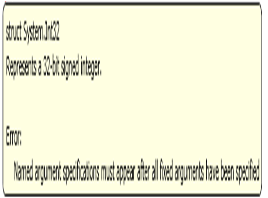 Whereas, the below line of code will throw compile time error. Because, positional argument can not follow a named argument.