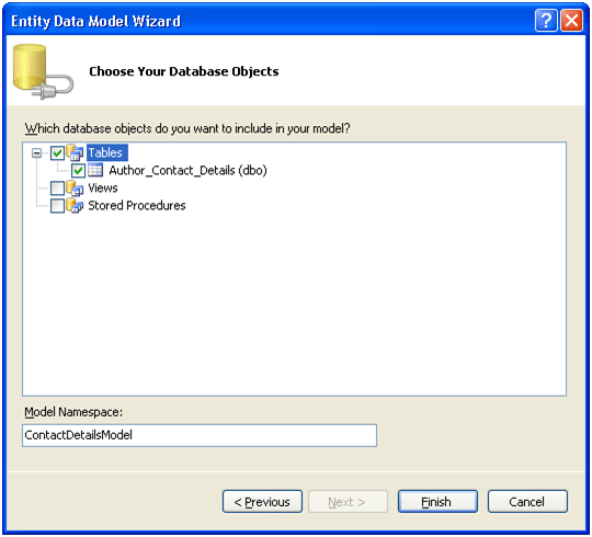 You will get and .edmx file. Which will have all the tables drawn along with their relationship. Since we have selected only one table, so there is only one table depicted.
