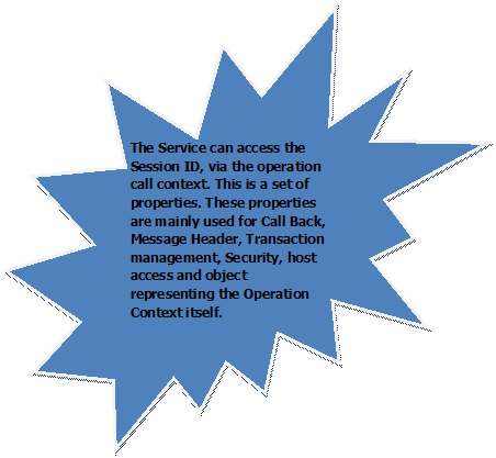 - Service is exposing one Operation Contract, which is returning Session ID for a particular operation context.