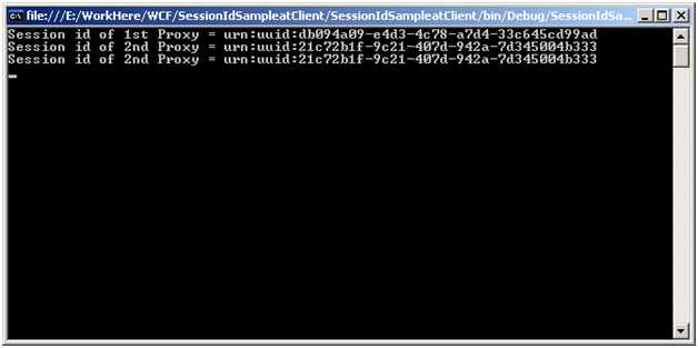 Console.WriteLine(“Session Id Fetched from the Service “ + proxy.GetSessionID());