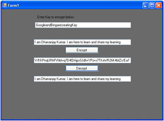- When User will click the Encrypt button, plain text will get encrypted and display in textbox2.