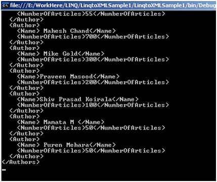 This article is going to explain, How to create XML Tree using LINQ? This will be explaining Functional Construction way of creating XML tree. There are three samples given in this article. One for basic XML tree construction, one to construct from array of objects and last to construct XML tree from content of a DB table.