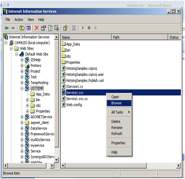 Just click on that, in right hand pane you will see service listed in this Virtual directory. Right click on service (name of you service) and select browse