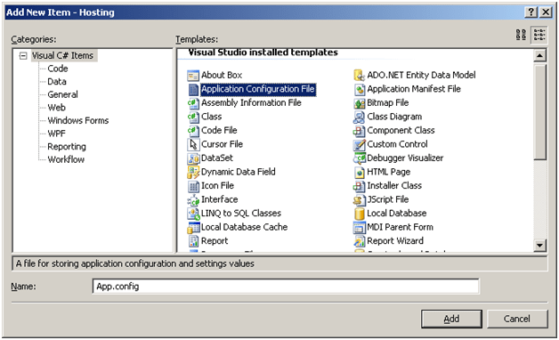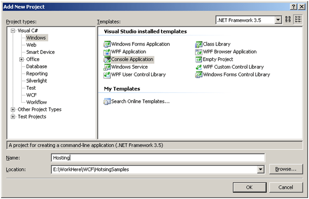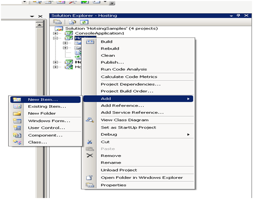 Right click on Service Project and add a new project by selecting Console Application as Project type. Name of console application project is here Hosting. You are free to give any name.