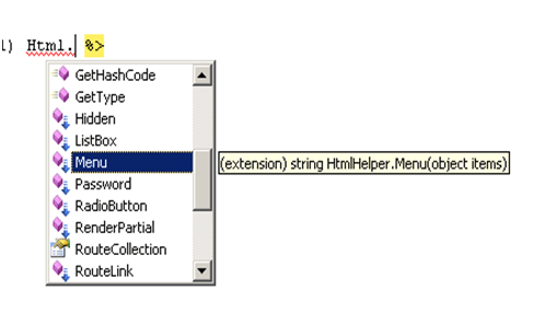 Now , we could see with Html class , .Net intellisense is able to sense the extension method