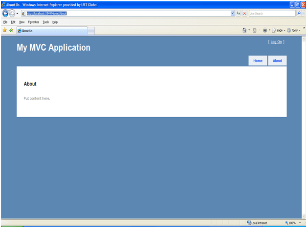 Run the application by pressing F5. Home page of MVC will get open. Type below URL in the address bar of browser