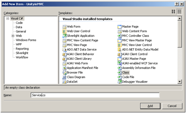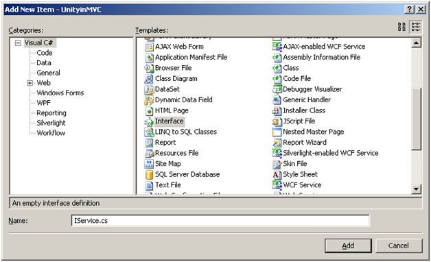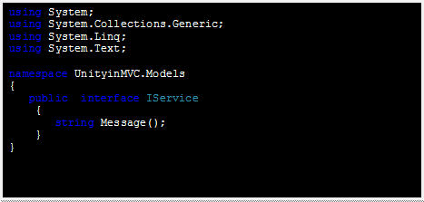 Now it is time to check that, how Custom Unity Container Factory is working. To test that, we will create a service interface and concrete service class in Model.