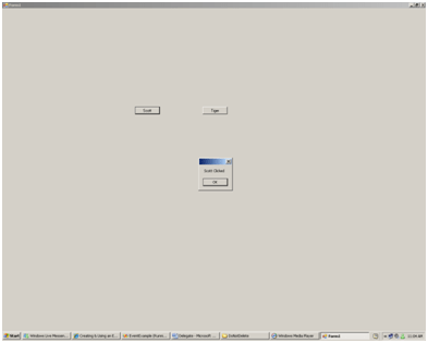 When button Scott is clicked , in message Box Scott is displaying. In this case Button_Click method is called by btn1_click delegate. In Button_Click() method , checking has been done for which Button object is calling the event. Or in other words which button is event sender. Code snippet which is checking the sender is