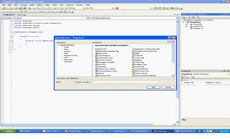 To achieve this add one more class. Name it SingeltonSample2.cs Add Class by right clicking on Project and then selecting Add New Class.