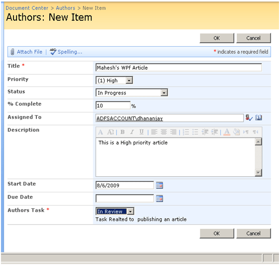 Fill all the details to add an Item into the Authors list. Click Ok.