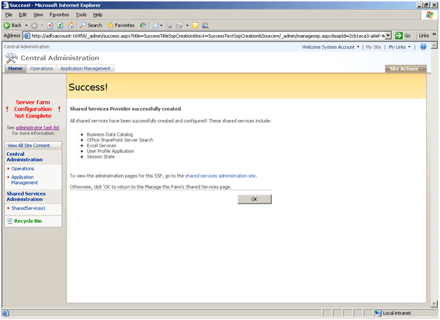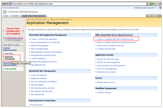 Now from Office SharePoint Server Shared Services click on Create or configure this farm’s shared services.