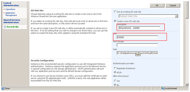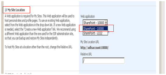 Now choose from dropdown the Web Application, you just created. Don’t modify any other default value here in this section.