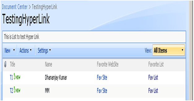 I have a SharePoint list called TestingHyperLink. Columns of SharePoint list are as below.