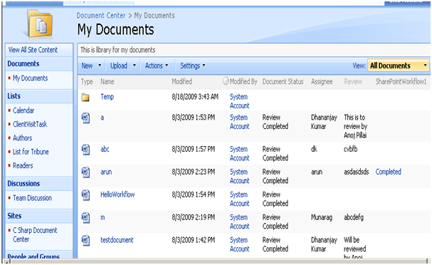 I do have a document library called “My Documents”. I am going to add folder this library. Currently the documents in library are as below.
