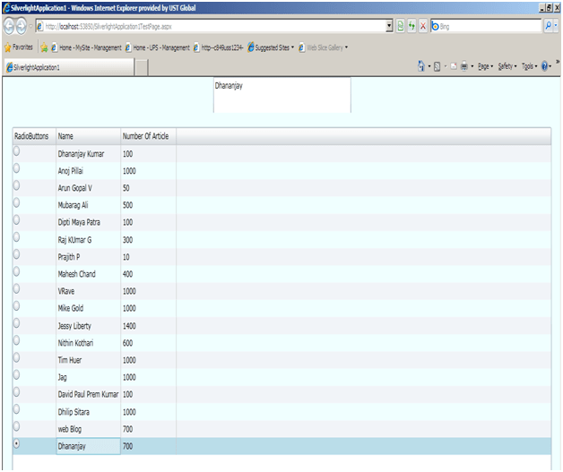 In this article, we saw how to work with Radio Button in Silver Light Data Grid. Thanks for reading. I hope it was useful.