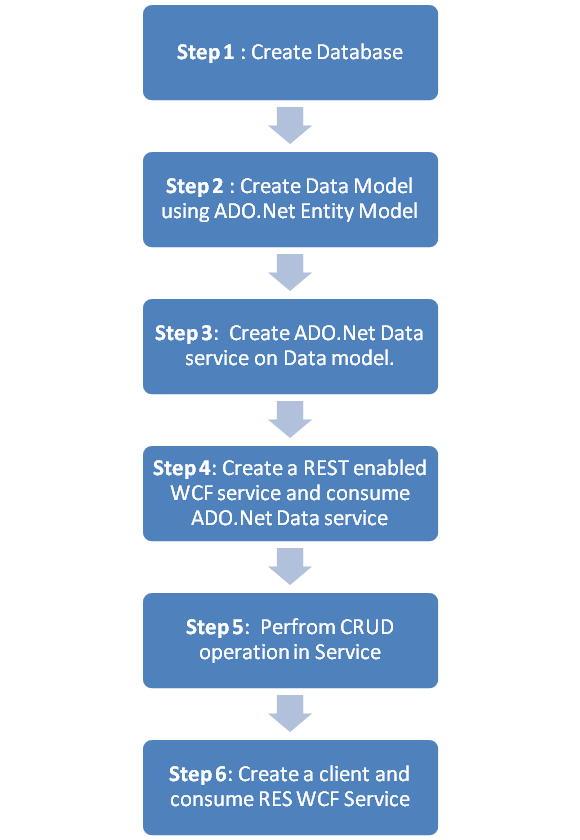 This article will explain step by step, how to perform CRUD operation on a database using ADO.Net Data Service and then how to expose CRUD operations as REST enabled WCF service to the client. This will also give explanation, how to consume REST service at client side. This article will perform the entire HTTP verb on the service at the client Side.