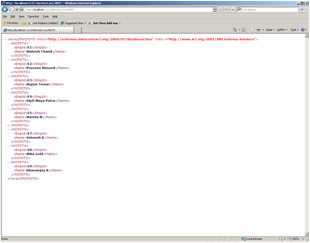 Up to this Step, we have created our REST WCF Service and tested that in the browser.