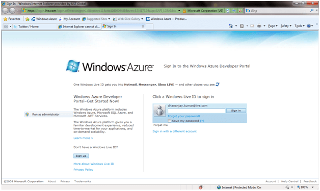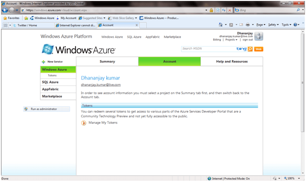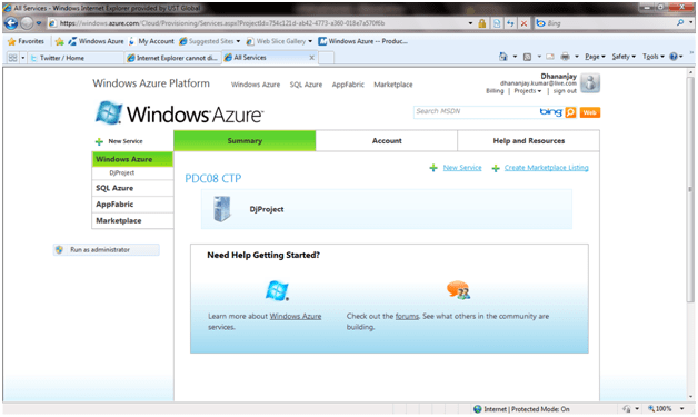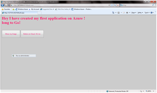 Run the application. This will run on the local development fabric. When we install azure SDK, local development fabric got installed. And when we run the cloud service local development fabric get started and host the application. This provides exactly the same environment as of azure in the cloud. This local development fabric could be used to debug the application before hosting into the cloud.