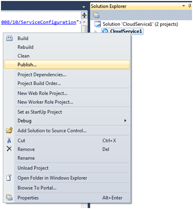 Right Click on Cloud Service 1 project and select Publish.
