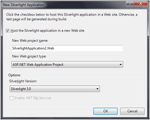 Create a SILVERLIGHT application. Select hosting in WEB Application project option.