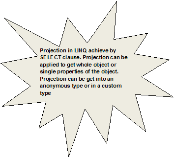 Let, we suppose we need to retrieve result from LINQ query to a custom class. In this case projection into custom class comes into play. Suppose we want to fetch hostelnumber and rollnumber from student object into a new custom class called studenthostel.