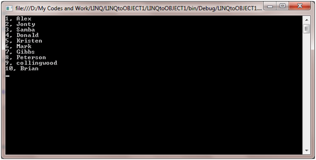Now have a look on both codes below, one is using LINQ and other is using LOOP to retrieve data from the list and print.