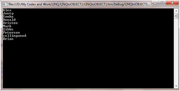 I am using Student as range variable. And we will get output as below .In above code I am using Student the class in ArrayList as range variable.