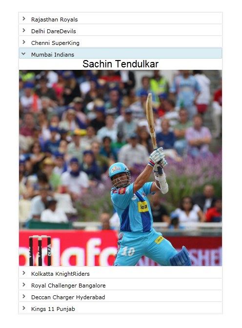 In this article, I have shown basic use of accordion control. I have shown how to bind Accordion items with different properties of an entity class. I will further modify this sample and add more functionality. Thanks for reading.