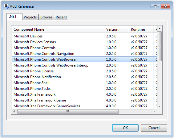i m not getting Microsoft.Phone.Controls.WebBrowser dll reference…why ?