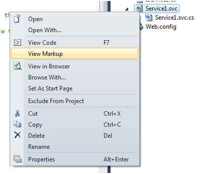 Right click on your .svc file and select view markup.