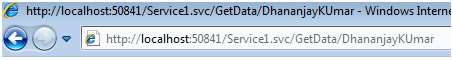 http://hostserver:port/Service1.svc/GetData/[parameter] so if you want to pass your name as parameter then URL would be http://hostserver:port/Service1.svc/GetData/DhananjayKumar