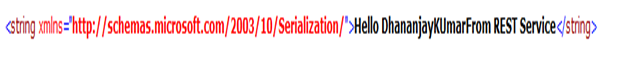 What I am going to do is to create a very simple REST service. Service will have one operation contract. This will take one string as input and return greeting message appending the string.
