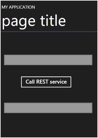 | <phoneNavigation:PhoneApplicationPage x:Class=”RESTServiceConsuming.MainPage” xmlns=”http://schemas.microsoft.com/winfx/2006/xaml/presentation” xmlns:x=http://schemas.microsoft.com/winfx/2006/xamlxmlns:phoneNavigation=”clr-namespace:Microsoft.Phone.Controls;assembly=Microsoft.Phone.Controls.Navigation” xmlns:d=http://schemas.microsoft.com/expression/blend/2008 xmlns:mc=http://schemas.openxmlformats.org/markup-compatibility/2006 mc:Ignorable=”d” d:DesignWidth=”480″ d:DesignHeight=”800″ FontFamily=”{StaticResource PhoneFontFamilyNormal}” FontSize=”{StaticResource PhoneFontSizeNormal}” Foreground=”{StaticResource PhoneForegroundBrush}”><Grid x:Name=”LayoutRoot” Background=”{StaticResource PhoneBackgroundBrush}”> <Grid.RowDefinitions> <RowDefinition Height=”Auto”/> <RowDefinition Height=”*”/> </Grid.RowDefinitions> <Grid x:Name=”TitleGrid” Grid.Row=”0″> <TextBlock Text=”MY APPLICATION” x:Name=”textBlockPageTitle” Style=”{StaticResource PhoneTextPageTitle1Style}”/> <TextBlock Text=”page title” x:Name=”textBlockListTitle” Style=”{StaticResource PhoneTextPageTitle2Style}”/> </Grid> <Grid x:Name=”ContentGrid” Grid.Row=”1″> <Button x:Name=”myButton” Height=”75″ Content=”Call REST service” Margin=”99,197,124,381″ /> <TextBox x:Name=”myTxtBox” Height=”31″ HorizontalAlignment=”Left” Margin=”20,96,0,0″ Text=” “ VerticalAlignment=”Top” Width=”434″ FontFamily=”Verdana” Foreground=”#FFCB4B4B” FontSize=”32″ /> <TextBox x:Name=”myTxtBoxDisplay” Height=”31″ HorizontalAlignment=”Left” Text=” “ VerticalAlignment=”Top” Width=”434″ FontFamily=”Verdana” Foreground=”#FFCB4B4B” FontSize=”20″ Margin=”20,319,0,0″ /> </Grid> </Grid></phoneNavigation:PhoneApplicationPage> |