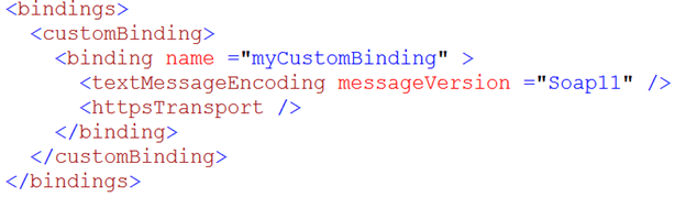 In above custom binding, I am using all the basicHttpBinding function but have modified the message format to SOAP11.
