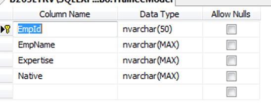 Let us say, I have created a database called ILPTrainee. This table got only one table with below structure