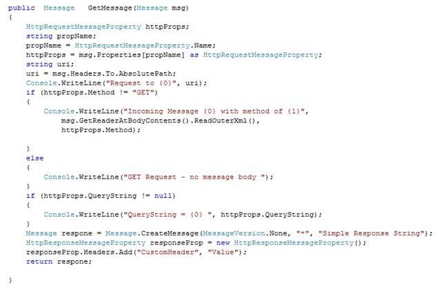 26 Console.WriteLine(“Incoming Message {0} with method of {1}”,