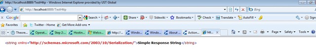 Now open the browser and open the URL which you added as address in endpoint in the code. In my case it is Http://localhost:8889/TestHttp