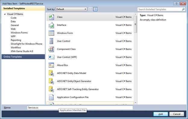 b. Add reference of System.ServiceModel and System.ServiceModel.Web (See Step 3).
