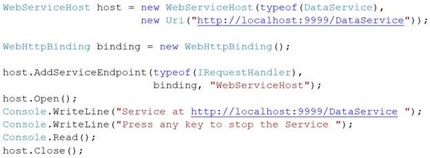 WebServiceHost host = new WebServiceHost(typeof(MyDataService),