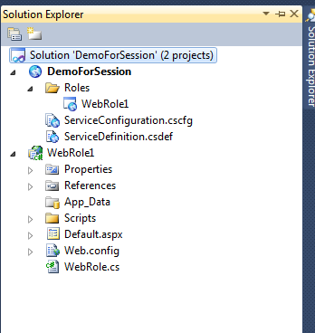 Now in solution explorer, you can see two projects one is cloud service project and other is ASP.Net Web Role project.