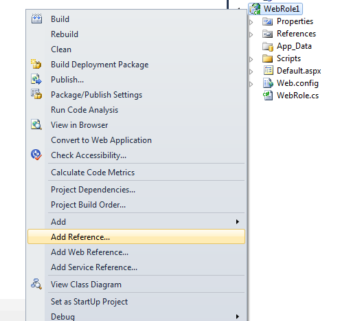 Add the below, references in your web role project. To do that, right click on web role project and select add references from context menu.