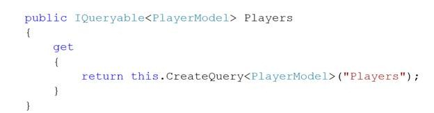 return this.CreateQuery<PlayerModel>(“Players”);