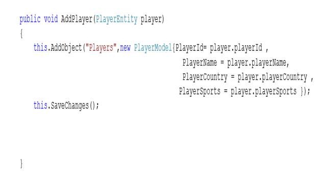 this.AddObject(“Players”,new PlayerModel{PlayerId= player.playerId ,