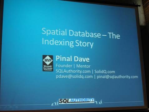 Session #1 Spatial Data Base-The Indexing Story, 10.30 to 11.30 by Pinal Dave