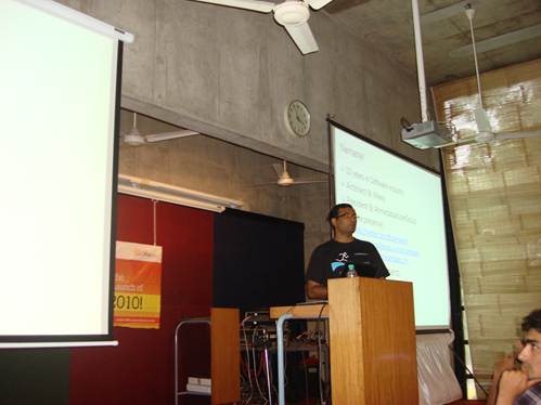 Before attending his session, I had a feeling that Model –View-View –Model pattern is next to impossible to understand in an hour. But he proved my feeling wrong with his great way of explanation and all audience was known to MMVM at the end of his session. He is a story teller. The way he started with “What is SilverLight” to ended with a full application running “without a code behind was awesome “. He is professional and each statement from his mouth was testifying that. He was highly energetic.