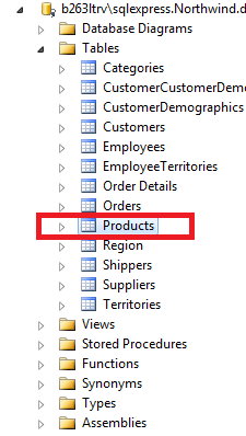 f. From Server explorer, expand the NorthWind database connection. From table tab select Product and drag it in design surface