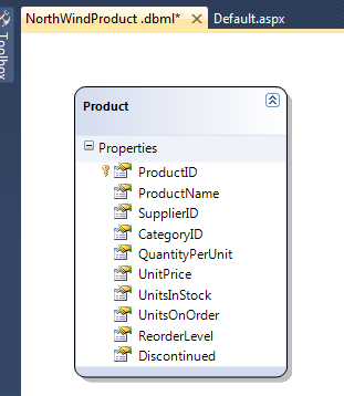 g. After dragging on the design surface NorthWindProduct.dbml file as below