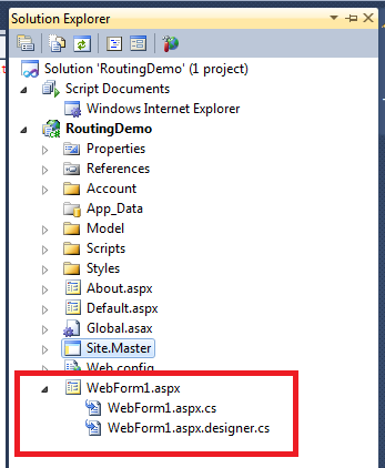 b. Now in solution explorer , you can notice you have WebForm.aspx